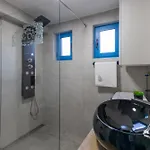 Die Villa Otus verfügt über ein Badezimmer mit einer Dusche. Es gibt einen Haartrockner und Badelaken für den Komfort der Gäste.